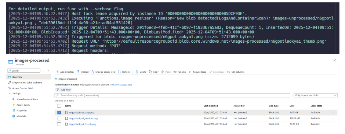 Within a few seconds, we should see our function fire and the resized files in the images-processed container should finish uploading: